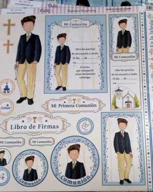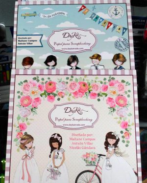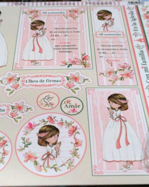 Papeles con motivos de comuniones para realizar creatividades con el sistema Scrapbooking.